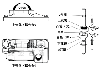 1、推動凸輪彈簧壓縮,凸輪脫離花鍵嚙合。