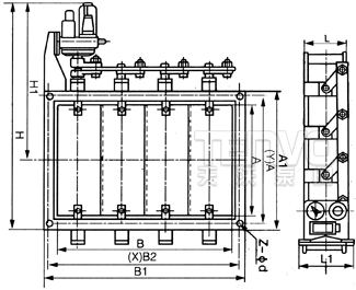 | A×B | A1×B1 | A2×B2 | L | L1 | H1 | H | B | Z-Φd | X | Y | 軸線 | 執(zhí)行器 |