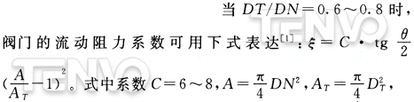 因此可以通過合理安排閥門結(jié)構(gòu)長度L,閥門喉徑DT以及閥體的開襠值K之間的關(guān)系,使θ盡量小,以降低閥門的流動阻力系數(shù)ξ,如圖2所示。