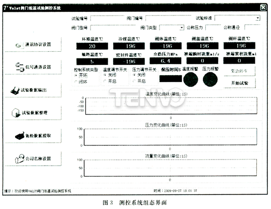 閥門低溫試驗過程中需要對冷媒溫度,閥體、閥蓋、閥桿、填料、密封件溫度,介質(zhì)壓力,泄漏量參數(shù)進(jìn)行測控。測控系統(tǒng)可以根據(jù)用戶的需求分為開環(huán)式和閉環(huán)式兩種。開環(huán)式測控系統(tǒng)只對測量參數(shù)進(jìn)行監(jiān)測、報警;閉環(huán)式測控系統(tǒng)可以對測量參數(shù)進(jìn)行監(jiān)測、報警、PID調(diào)節(jié)。