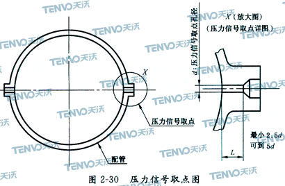 4)進口和出口的壓力信號取點為各1個,對稱分布。其軸線為水平線,與配管的軸線相交成直角。