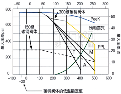 注意:316不銹鋼或20號(hào)合金閥桿的1/4″-60″(DN350-1500)的150級(jí)閥門(mén)的最大壓力差為150psi