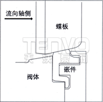 當(dāng)嵌件側(cè)受壓時(shí),壓力被施加于唇緣的下方進(jìn)一步加大了蝶板與閥座之間的密封力。