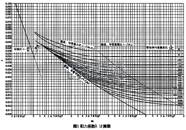 如果液體介質(zhì)流過簡單的管路,壓力損失值可按實驗確定的系數(shù)λ久進行理論計算,見圖1。對于局部阻力,僅僅在簡單的情況下進行理論計算,因為在大多數(shù)情況下,系數(shù)ζ是不同的,必須按不同情況通過實驗來確定。實際上,系數(shù)ζ表示流體沿程阻力的動能損失。對于兩個不同的結(jié)構(gòu)或兩種不同的工藝條件,除了偶然的情況外,水力阻力是不相等的,系數(shù)ζ也是不同的。