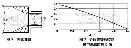 3)突然收縮。如圖7所示,如果已知介質(zhì)的收縮截面是A2,在這種情況下,壓力損失的確定與突然擴大時相似。