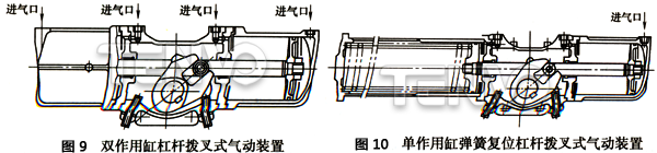 (2)氣動(dòng)裝置的分類和結(jié)構(gòu)特點(diǎn) 閥門氣動(dòng)裝置按其結(jié)構(gòu)特點(diǎn)分為四種:薄膜式氣動(dòng)裝置、氣缸式氣動(dòng)裝置、擺動(dòng)式氣動(dòng)裝置、氣動(dòng)馬達(dá)式氣動(dòng)裝置。