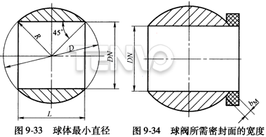 球閥在達到密封時,所需的密封面寬度,如圖9-34所示。